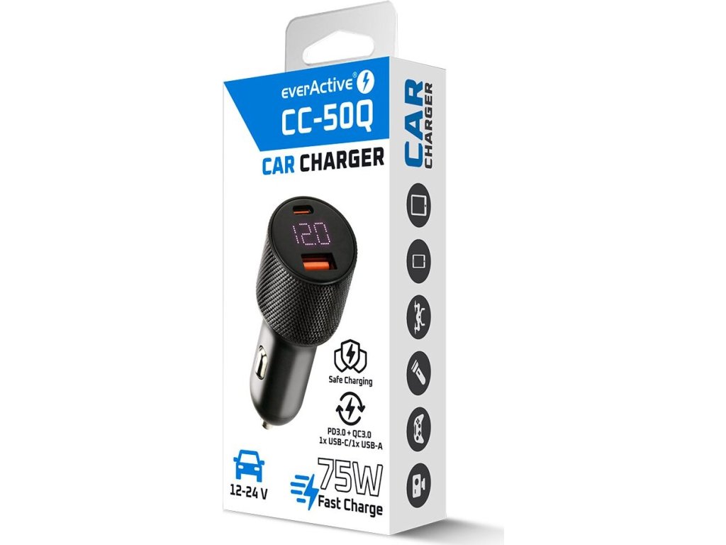 Autonabíjačka everActive CC-50Q: 50W Výkon s USB-C Power Delivery a Voltmetrom