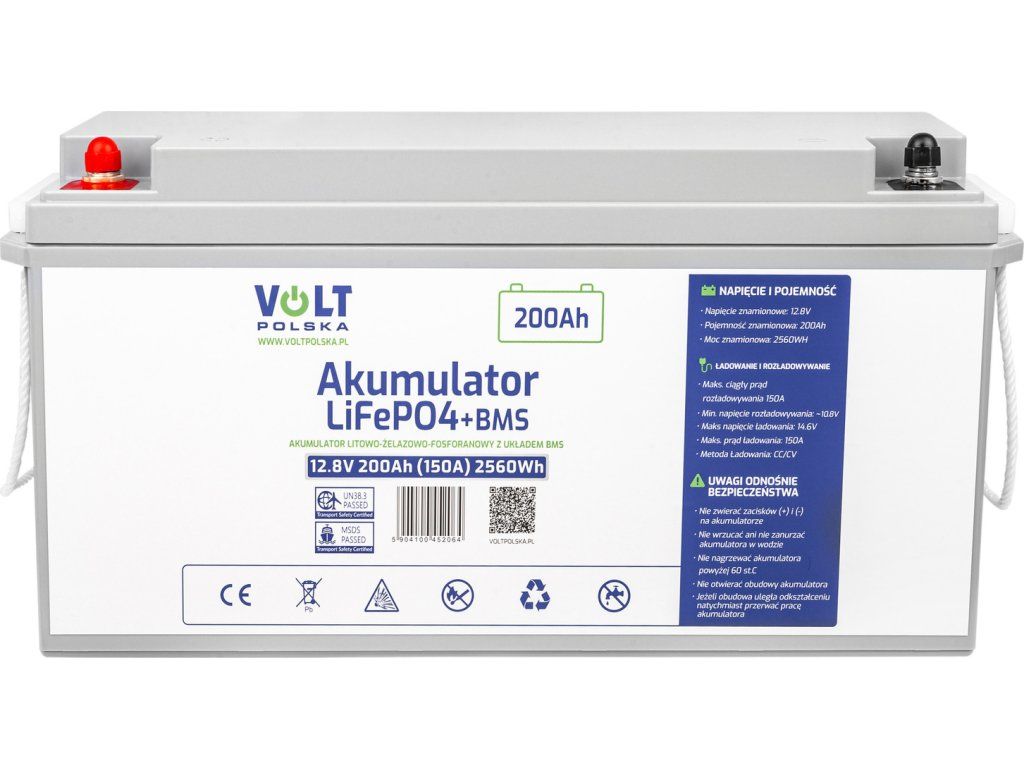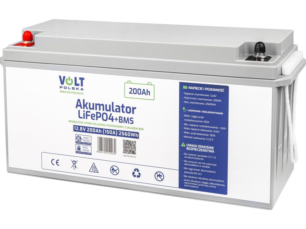 Hľadáte spoľahlivý a výkonný akumulátor s dlhou životnosťou? LiFePO4 akumulátor 12V 200Ah od Volt Polska je ideálnym riešením pre širokú škálu aplikácií. Vďaka svojej nízkej hmotnosti a vysokej cyklickej životnosti (až 6000 cyklov ) je perfektnou voľbou pre karavany, obytné vozy, lode, off-grid systémy a záložné zdroje energie. Vysokokapacitný LiFePO4 akumulátor s nominálnym napätím 12,8V a kapacitou 200Ah predstavuje špičkové riešenie pre náročné energetické aplikácie. Tento lítium-železo-fosfátový akumulátor novej generácie je vybavený vstavaným BMS (Battery Management System).