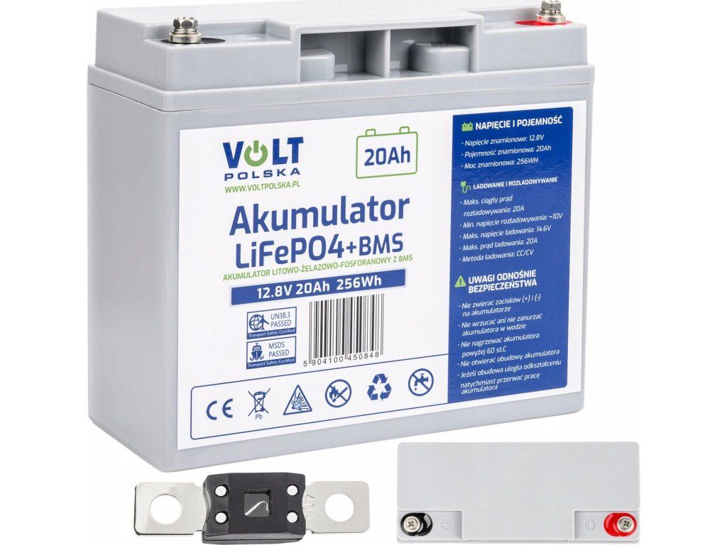 Batéria s menovitým napätím 12,8 V, kapacitou 20 Ah a vybíjacím prúdom do 20 A.