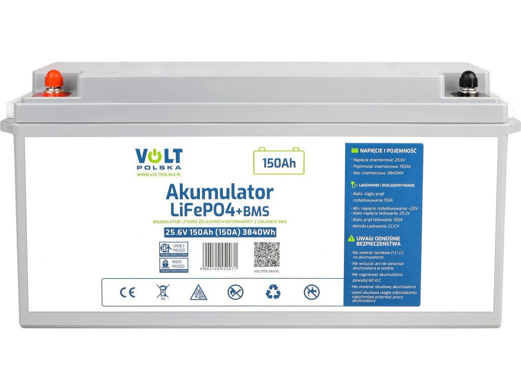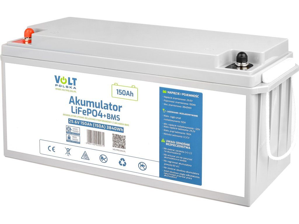 Tento LiFePO4 akumulátor od Volt s kapacitou 150Ah a napätím 25,6V je tou správnou voľbou. Vďaka integrovanému systému BMS (Battery Management System) je zaručená bezpečná prevádzka a dlhá životnosť.