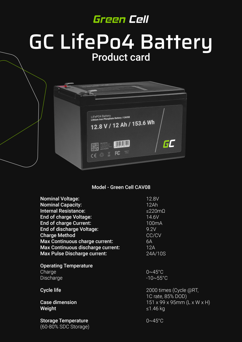 LiFePO4 batérie od Green Cell vám umožňujú zostaviť sady až 4 kusov (25.6V/38.4V/51.2V), čo je ideálne pre fotovoltické inštalácie, skladovanie energie, prívesné motory alebo elektrické vozidlá.