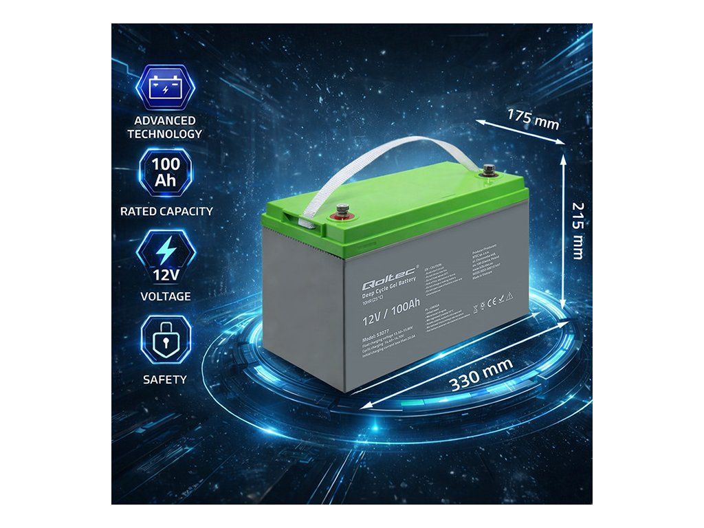Gélová batéria Qoltec určená pre vyrovnávaciu aj cyklickú prevádzku. Výrobok je bezúdržbový,...