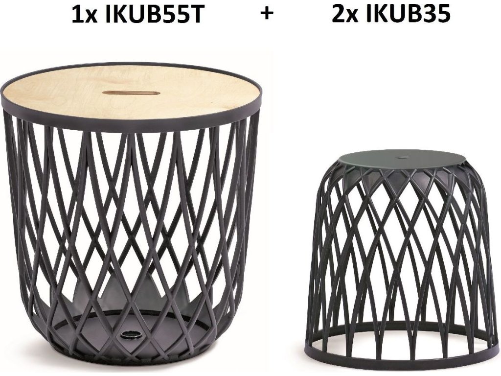 - Multifunkčnosť: Sedadlá a stolík sú v skutočnosti koše s objemom 35l (sedadlá) a 55l (stôl), ktoré môžete využiť na uskladnenie rôznych vecí. Otočením ich ľahko premeníte na štýlové sedačky alebo stolík.