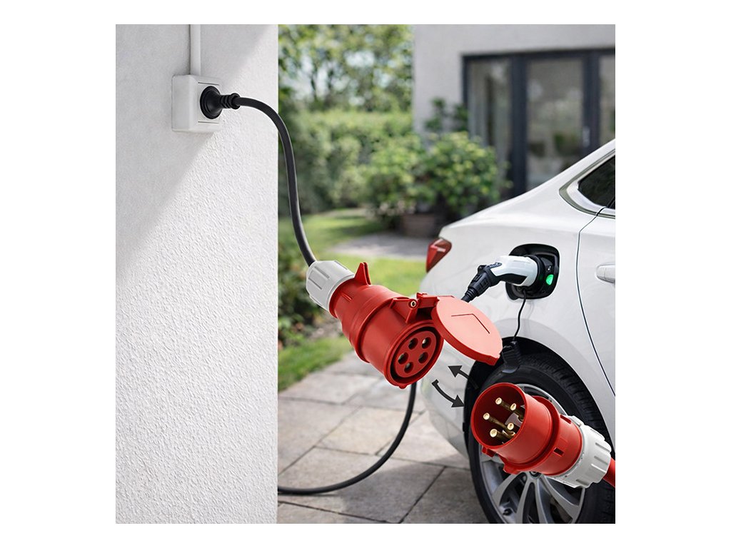 Napájací adaptér pre nabíjačky elektromobilov | CEE 32A 5P 400V zásuvka do SCHUKO 230V | max 16A | 3,5 kW