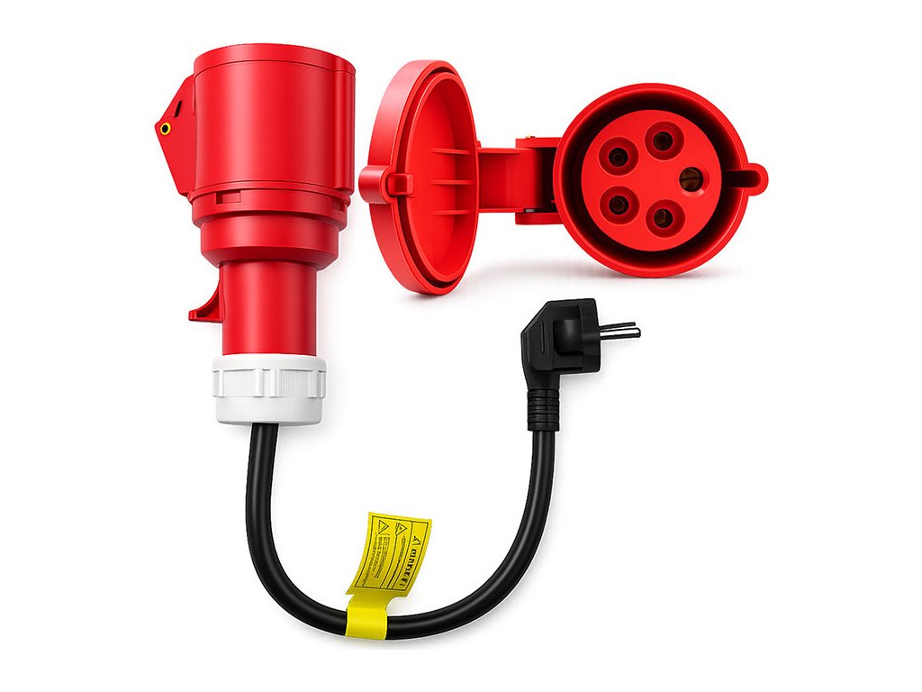 Profesionálny napájací adaptér, ktorý umožňuje napájať jednofázové zariadenia s napätím 230 V z priemyselnej trojfázovej zásuvky s prúdom 32 A. Adaptér využíva jednu fázu z trojfázovej inštalácie a poskytuje výstupné napätie 230 V. Tento praktický menič zo 400 V na 230 V je určený pre technické a dielenské aplikácie, ako aj pre mobilné nabíjačky elektromobilov s napätím 230 V. Robustné konektory CEE a kábel 3x2,5 mm² zaisťujú stabilné prevádzkové parametre pri maximálnom zaťažení 16 A (3,5 kW).