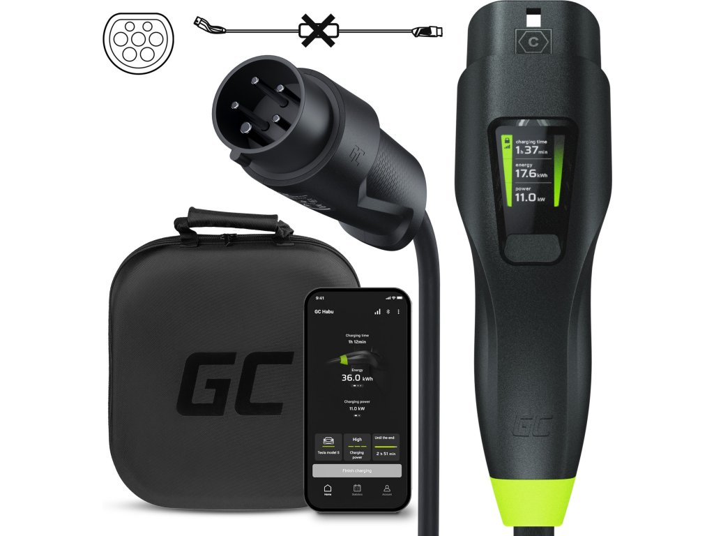 Mobilná nabíjačka Habu EV, 11kW, 7m, Typ 2 CEE 16A na nabíjanie elektrických vozidiel EV PHEV 2v1 Wallbox s aplikáciou