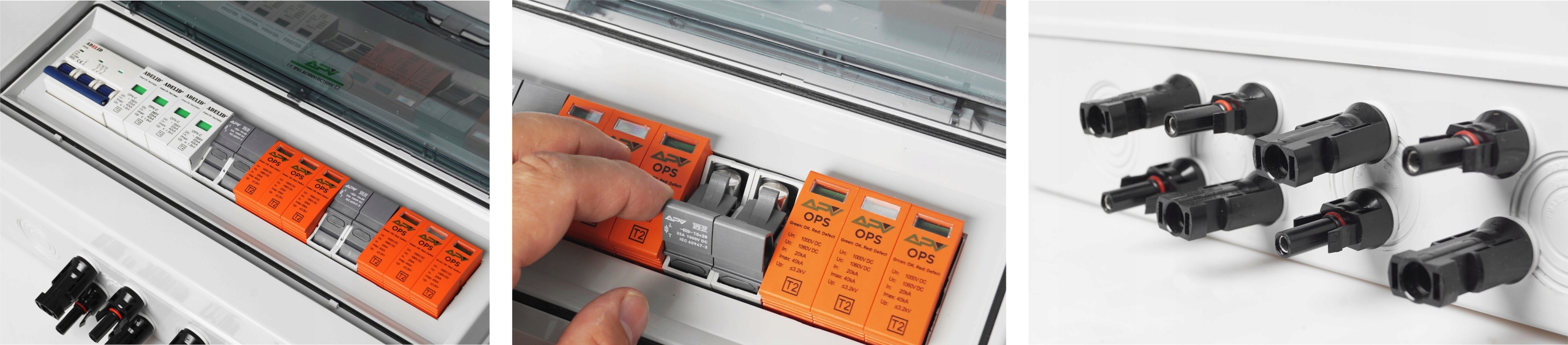 - 2x APV zvodič prepätia, 3P trieda C [T2], 1000V DC, 32A