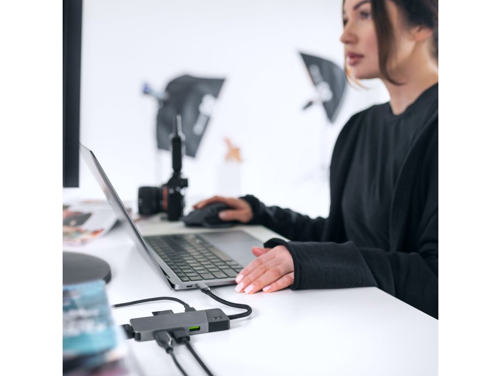 Produkt vyvinuli inžinieri a špecialisti Green Cell, ktorí sa postarali o kompaktné rozmery, nízku hmotnosť a odolnú hliníkovú konštrukciu. To všetko robí HUB GC Connect bez problémov s vami na služobnej ceste, univerzite alebo výlete. Môžete ho tiež natrvalo pripojiť k potrebným zariadeniam a umiestniť na stôl, kde nezaberie veľa miesta a umožní vám pohodlne si zorganizovať priestor.