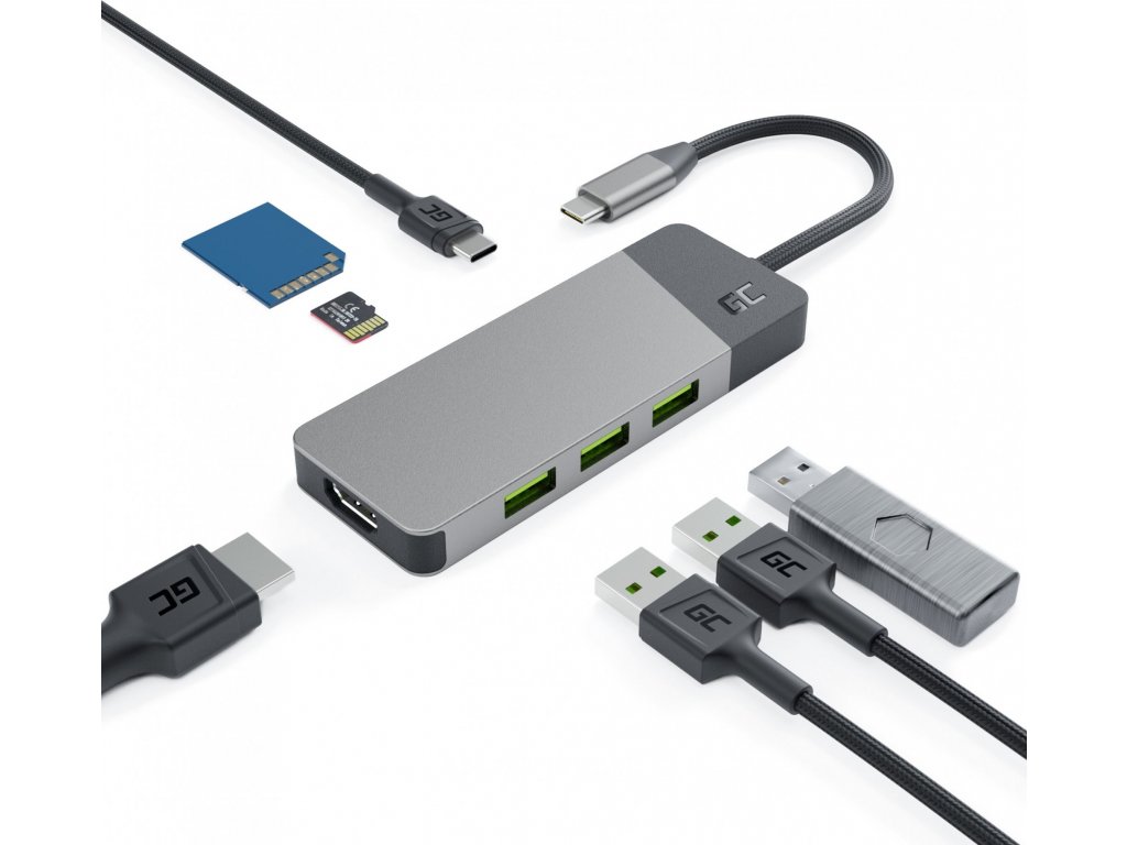 Vymeňte svoj port USB-C za viacero chýbajúcich portov. USB-C 7v1 GC Connect HUB premení jeden USB-C Thunderbolt port na 7 ďalších, čo vám umožní pripojiť napríklad monitor, myš, klávesnicu, pendrive, externé disky, pamäťové karty a dokonca aj rýchle USB-C. nabíjací zdroj pre váš notebook, notebook, ultrabook, tablet alebo smartfón.