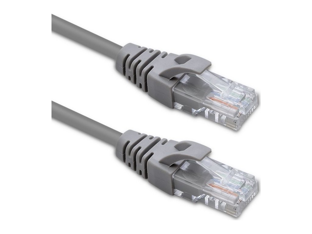 - Na oboch koncoch kábla sú konektory RJ-45 - štandardný modulárny konektor s 8 pinmi ,