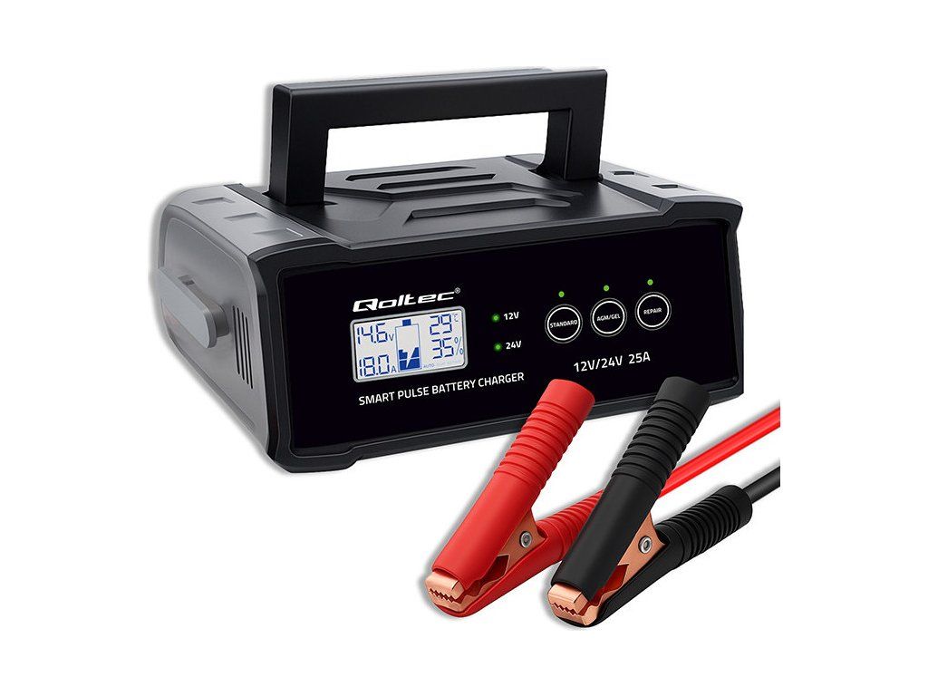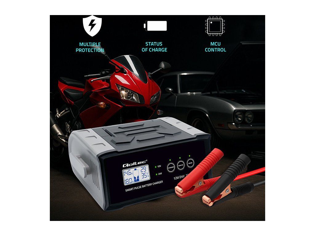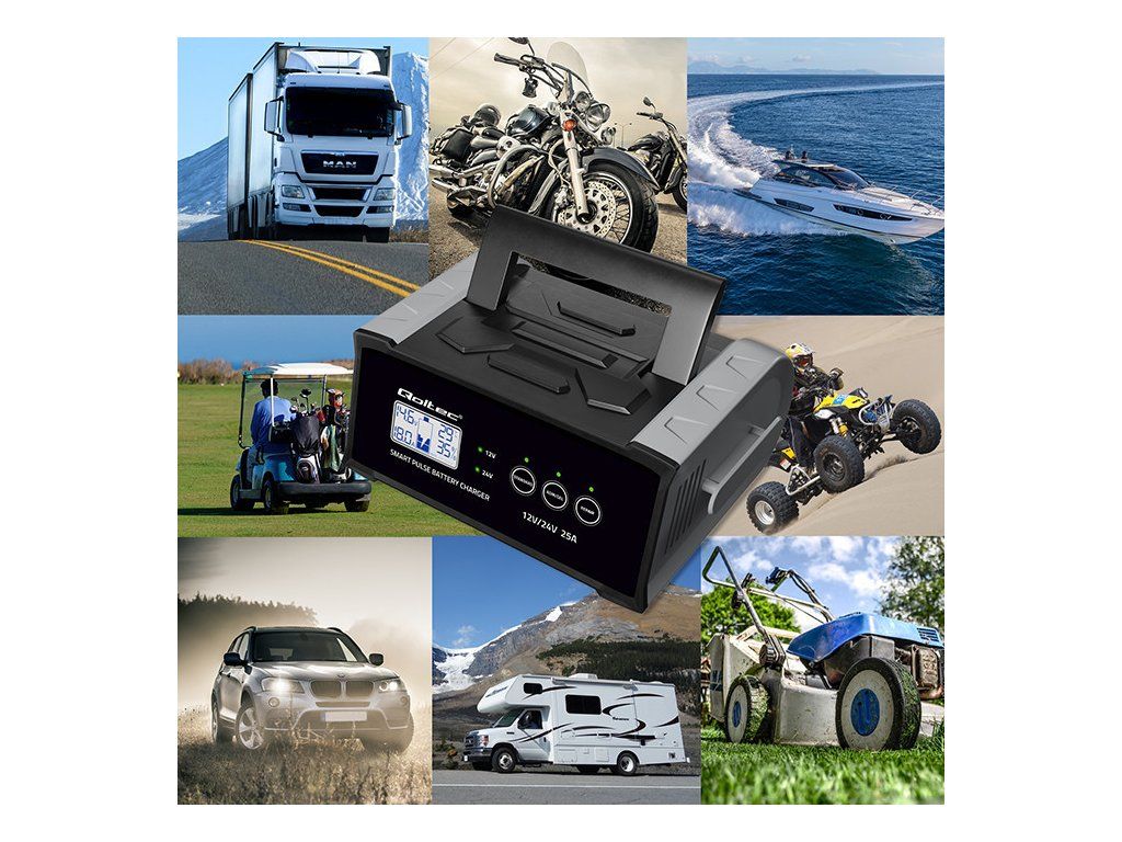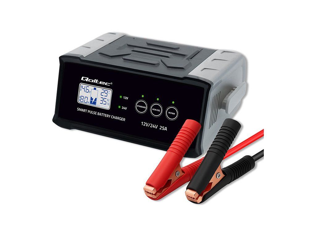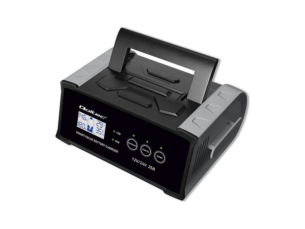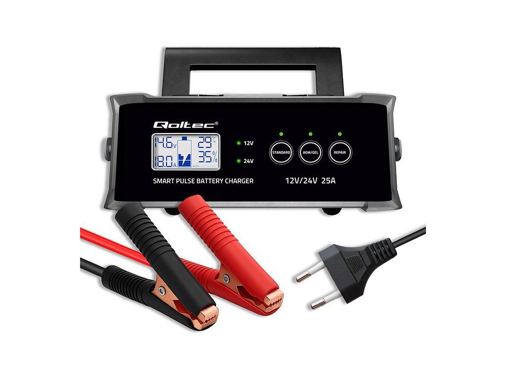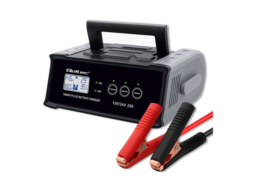 Nabíjačka Qoltec ponúka presné nabíjanie založené na mikroprocesore ; jedna nabíjačka je dostatočná pre rôzne typy batérií. Čas potrebný na nabíjanie závisí od stupňa vybitia batérie a jej skutočnej kapacity . Nabíjačka je určená na nabíjanie batérií v automobiloch, motocykloch, lodiach, kosačkách na trávu, poľnohospodárskych vozidlách a štvorkolkách.