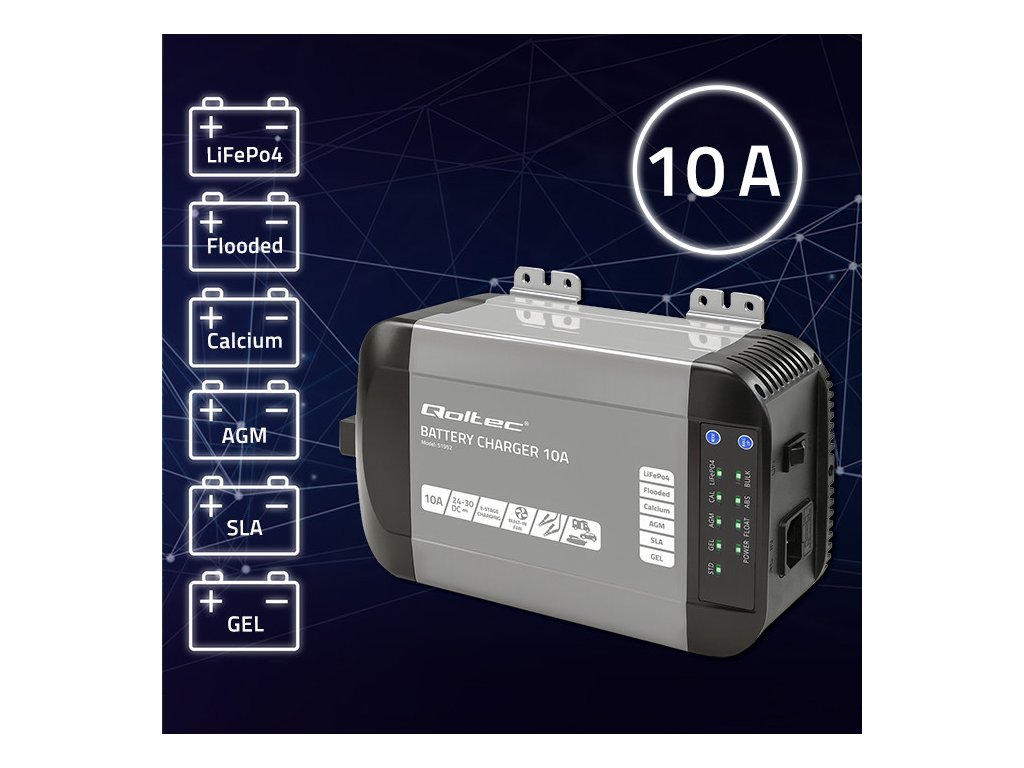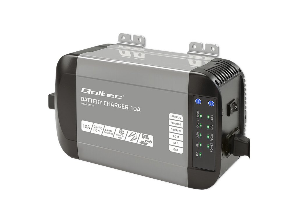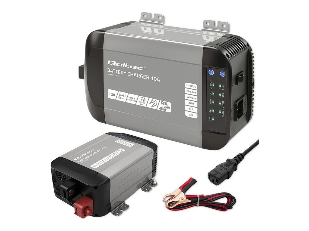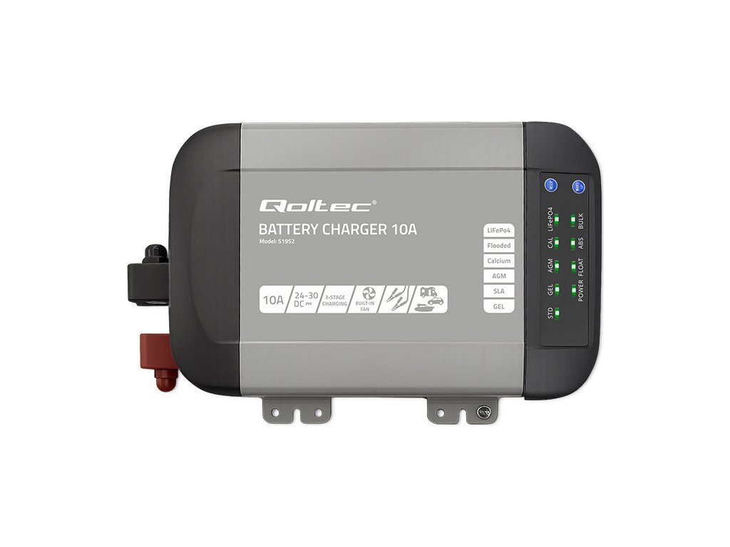Inteligentná monolitná nabíjačka Qoltec pre LiFePO4 AGM gélové SLA batérie | 10A | 24V