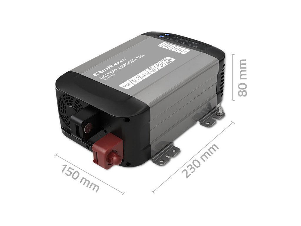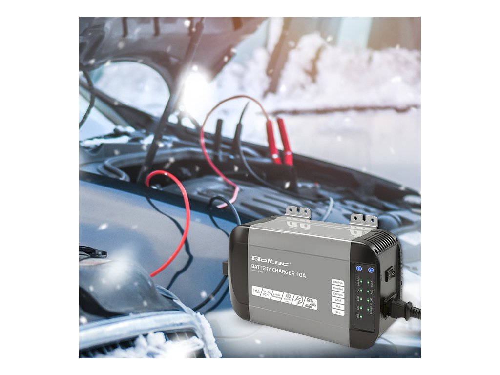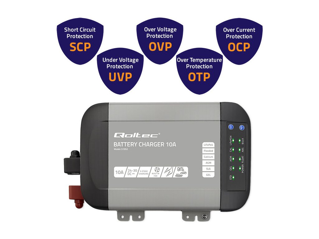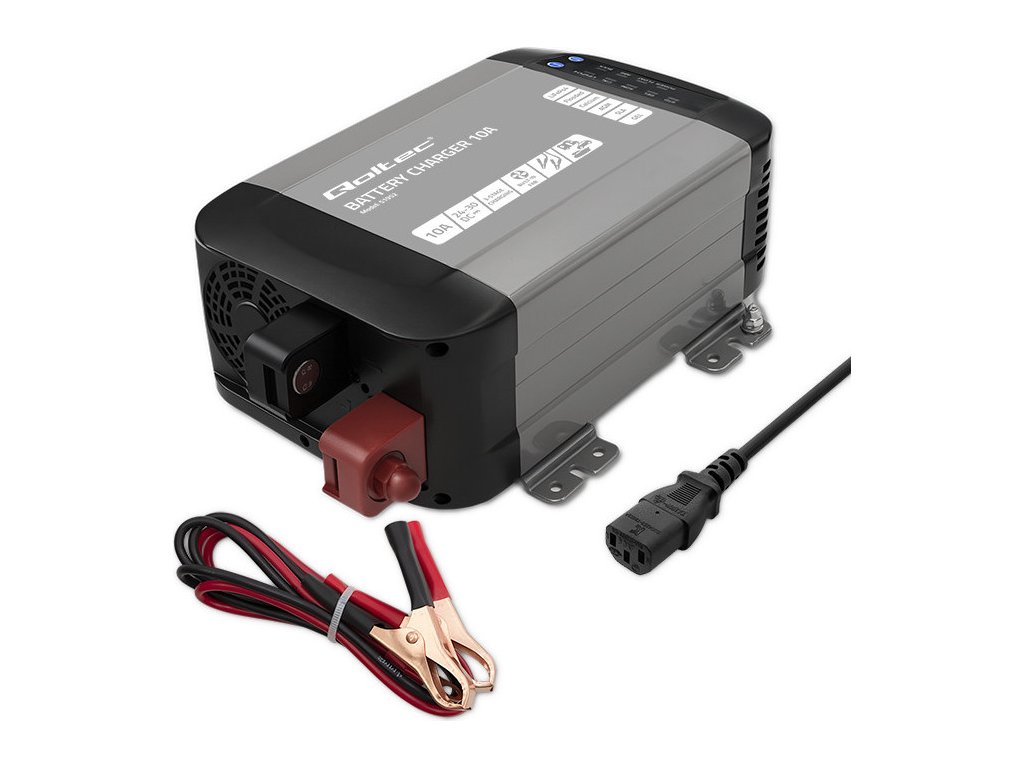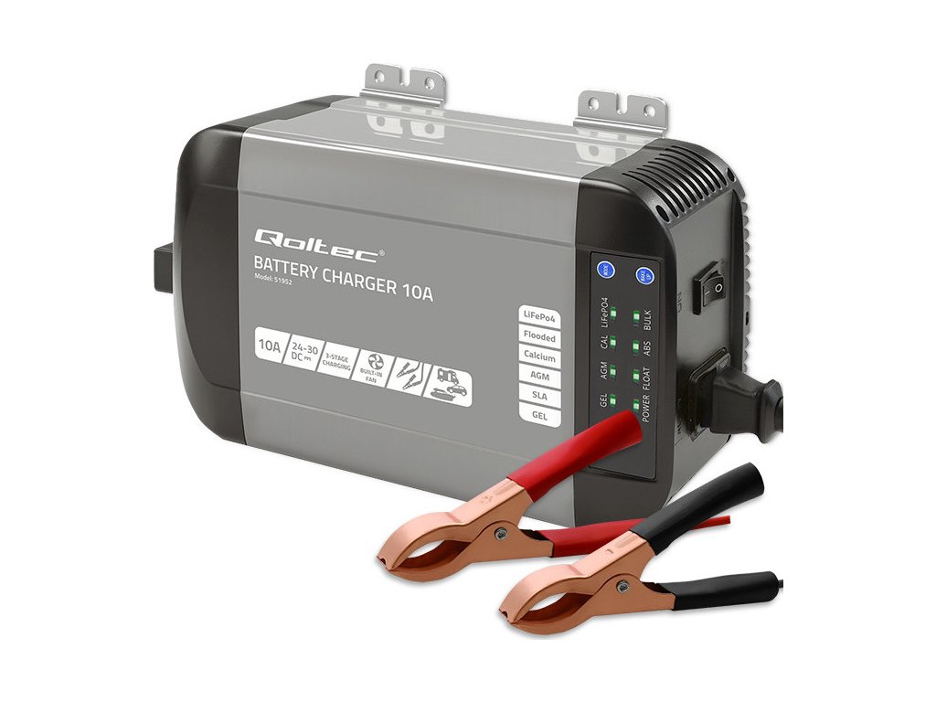 Inteligentná monolitná nabíjačka Qoltec pre LiFePO4 AGM gélové SLA batérie | 10A | 24V