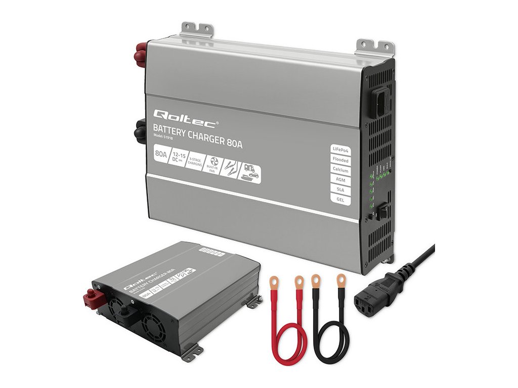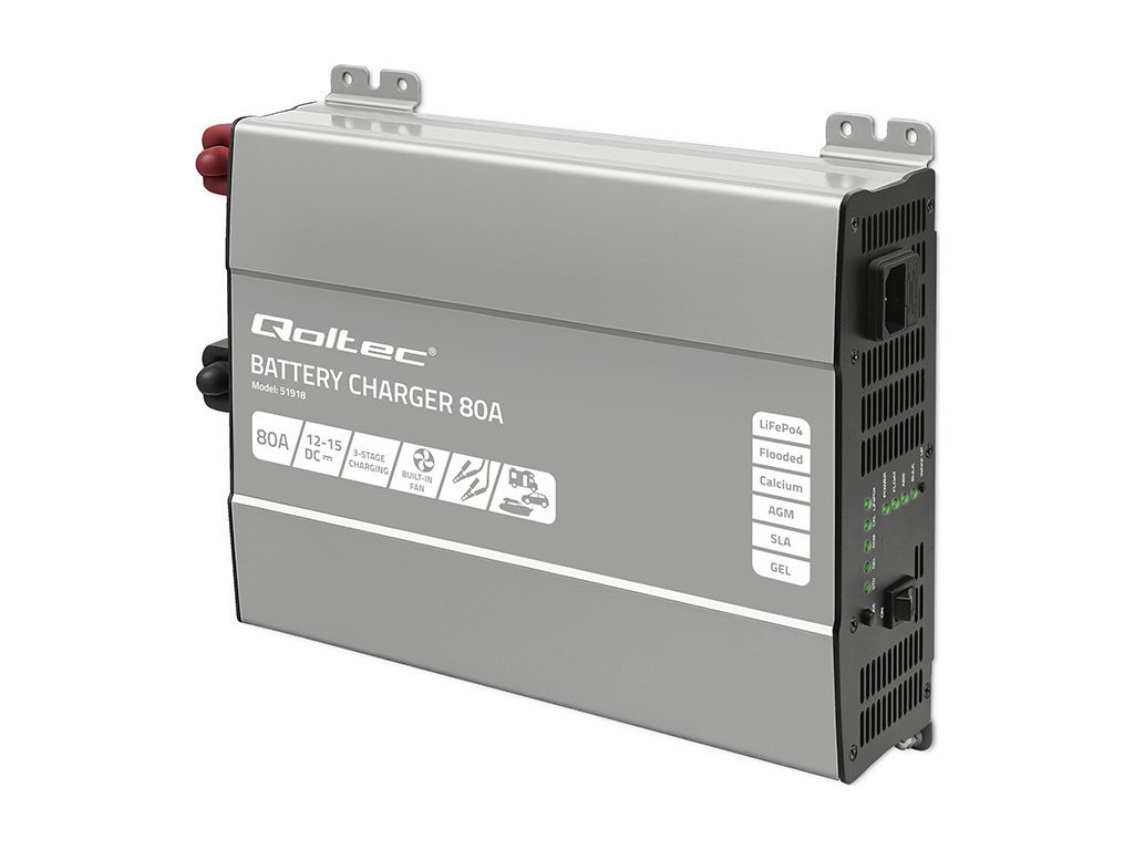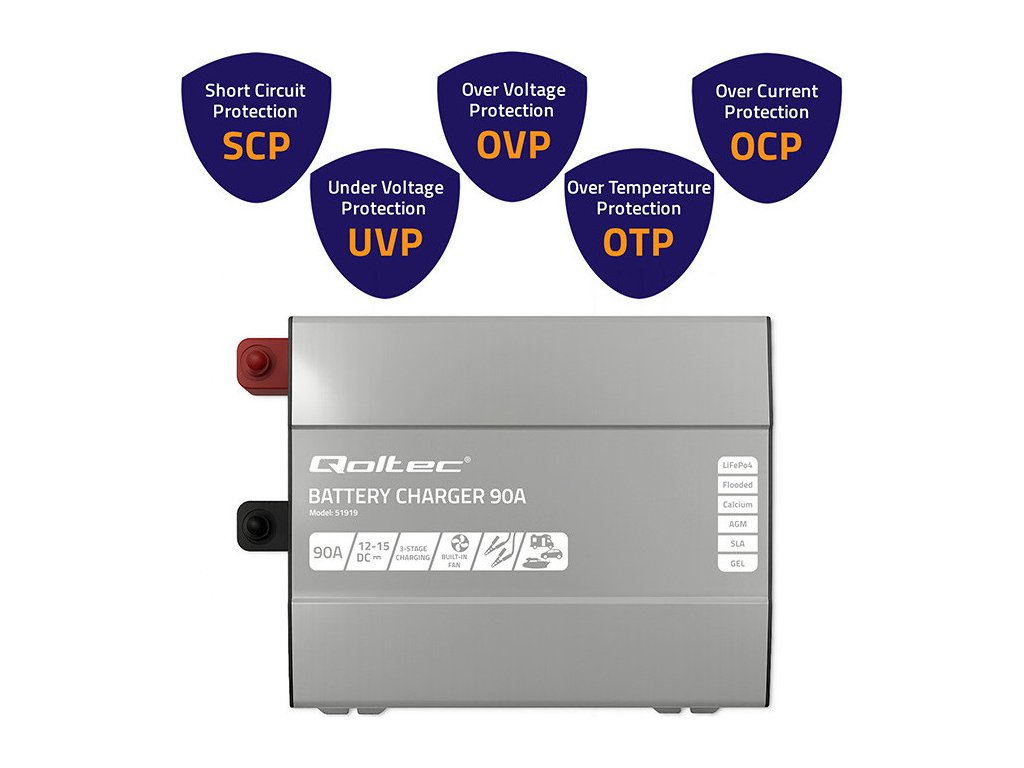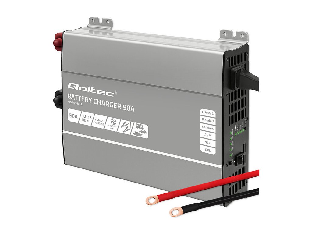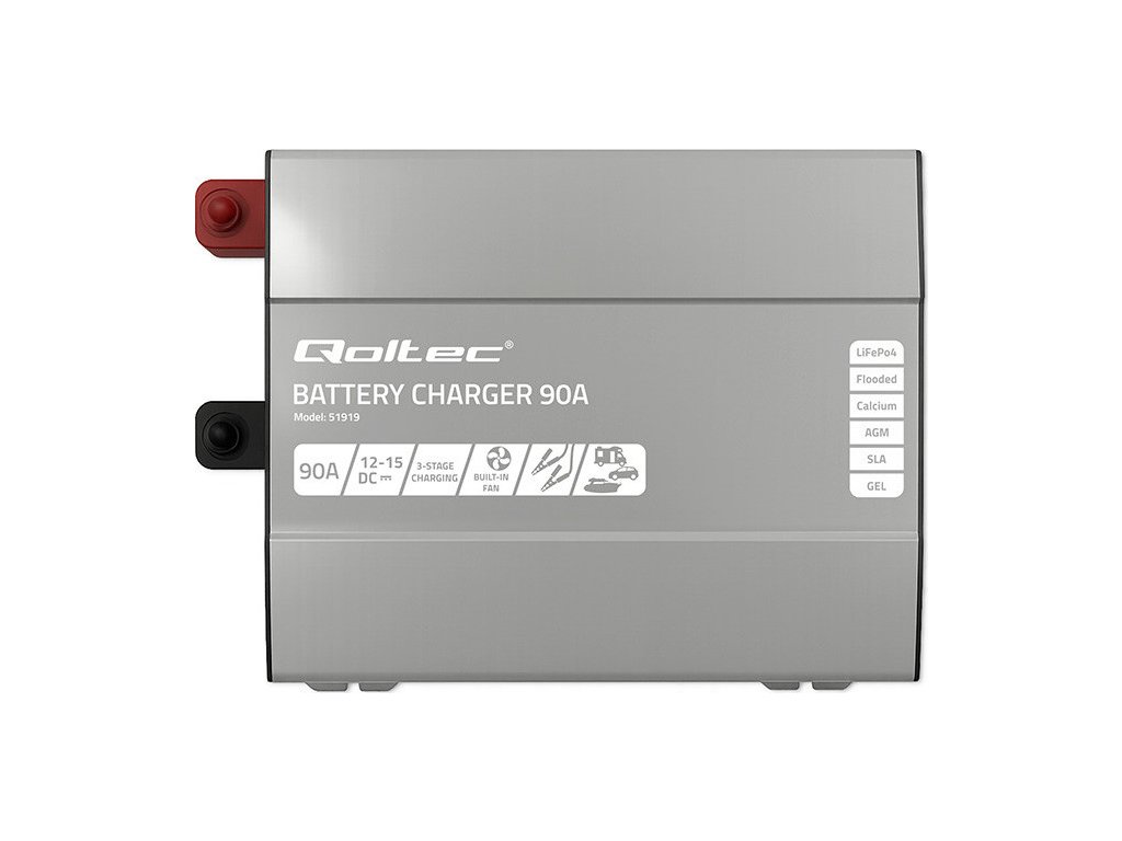 Inteligentná profesionálna monolitná nabíjačka Qoltec pre LiFePO4 AGM gélové SLA batérie | 90A | 12V | Rýchle nabíjanie