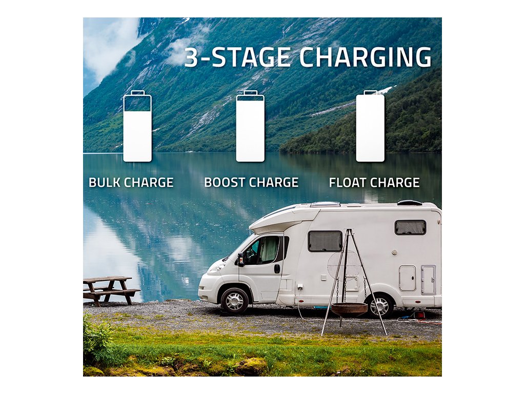 • 3-stupňový režim nabíjania – zaisťuje oveľa rýchlejšie, efektívnejšie a úplné nabitie bez problémov s poklesmi napätia,