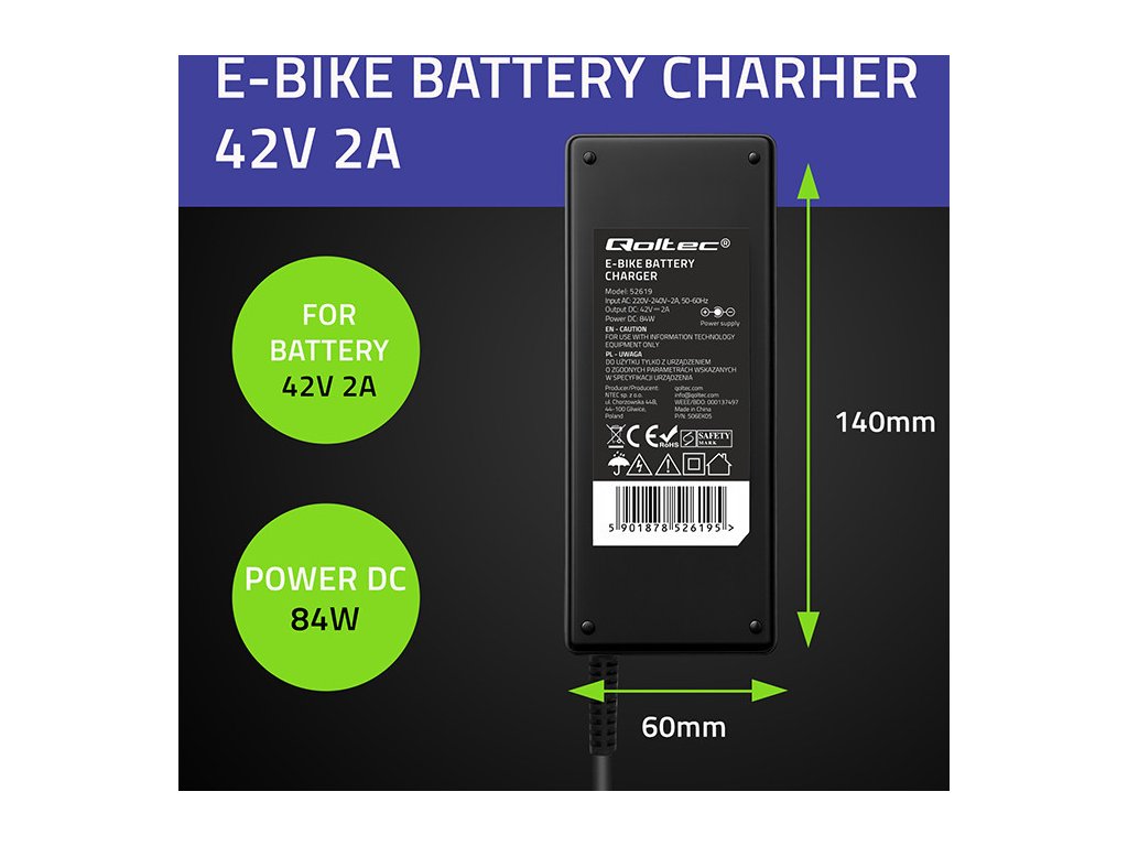 Ak hľadáte tú správnu nabíjačku na nabíjanie batérie vášho elektrobicykla, určite si pozrite našu ponuku. Nabíjačky Qoltec sa vyznačujú predovšetkým vysokou úrovňou bezpečnosti, odolnosťou a vysokou účinnosťou . Samozrejme, je dôležité pamätať na to, že pri nabíjaní lítium-iónovej batérie je nevyhnutná opatrnosť a obozretnosť. Správne nabíjanie bude mať pozitívny vplyv na životnosť batérie a umožní vám udržiavať požadované parametre počas dlhého obdobia používania.