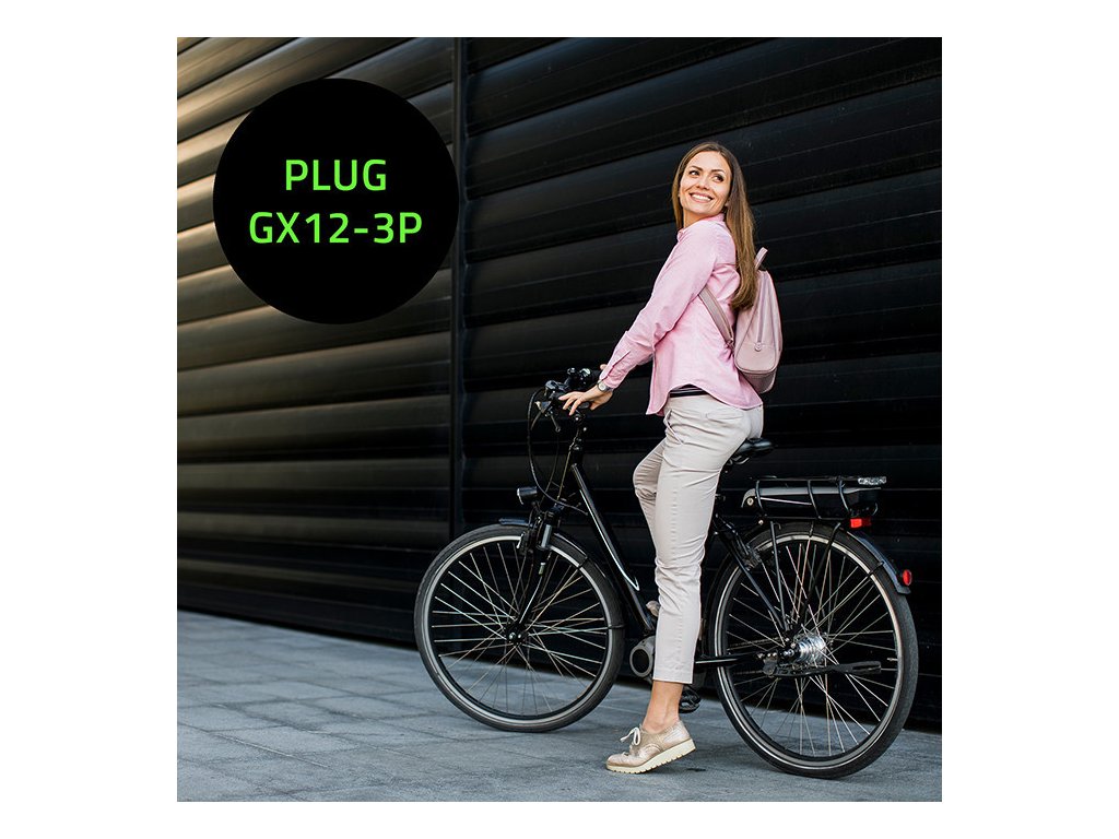 | Kompatibilita: | Elektrické bicykle s nabíjacou zásuvkou, GX12-3P (3-kolíkovou) |