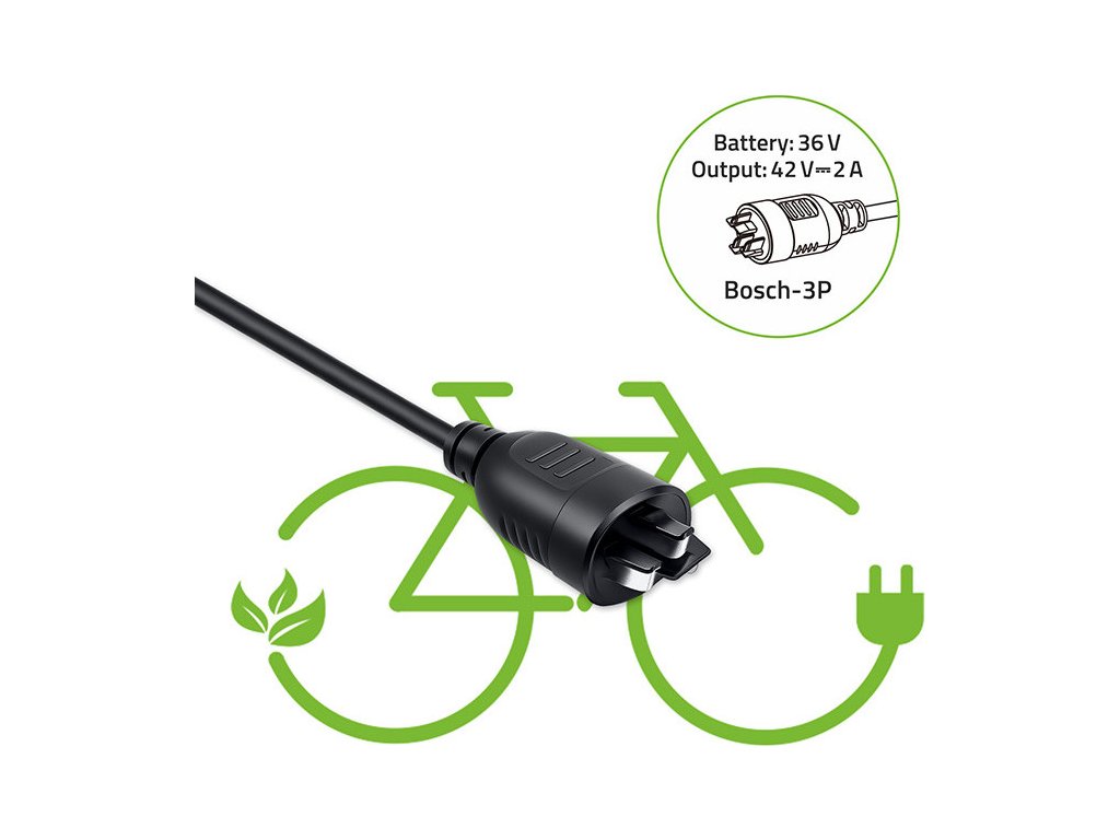 Rýchlonabíjačka pre elektrobicykel 36V | 42V | 2A | Bosch 3-kolíková zástrčka + napájací kábel