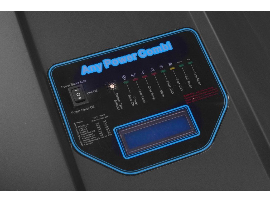Inteligentný systém nabíjania: Vstavaná nabíjačka s prúdom 80 A sa postará o rýchle dobitie vašej batériovej banky (48V), hneď ako sa obnoví dodávka zo siete.