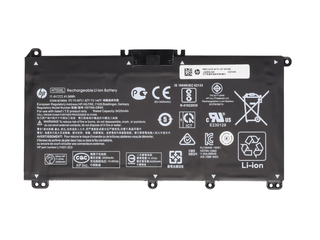 Kompatibilné s nasledujúcimi modelmi batérií: HSTNN-UB7J, HSTNN-DB8R, HSTNN-IB8O, HSTNN-LB8M, HT03XL, L11119-422, L11119-855, L11119-856, L11119-857, L11421-1C1, L11421-1C2, L11421-271, L11421-2C1, L11421-2C2, L11421-2C3, L11421-2D1, L11421-2D2, L11421-421, L11421-422, L11421-542, L11421-545, TPN-C135, TPN-C136, TPN-I130, TPN-I131, TPN-I132, TPN-I133, TPN-I134, TPN-Q207, TPN-Q208, TPN-Q209, TPN-Q210 , HSTNN-DB8S