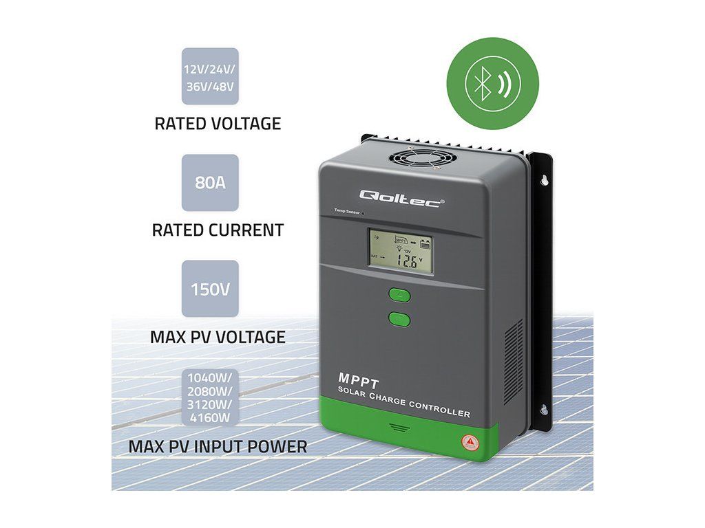 Solárny regulátor nabíjania MPPT s teplotným senzorom 80A | 12V / 24V / 36V / 48V | LCD | Bluetooth | Aplikácia | Gél | LiFePO4
