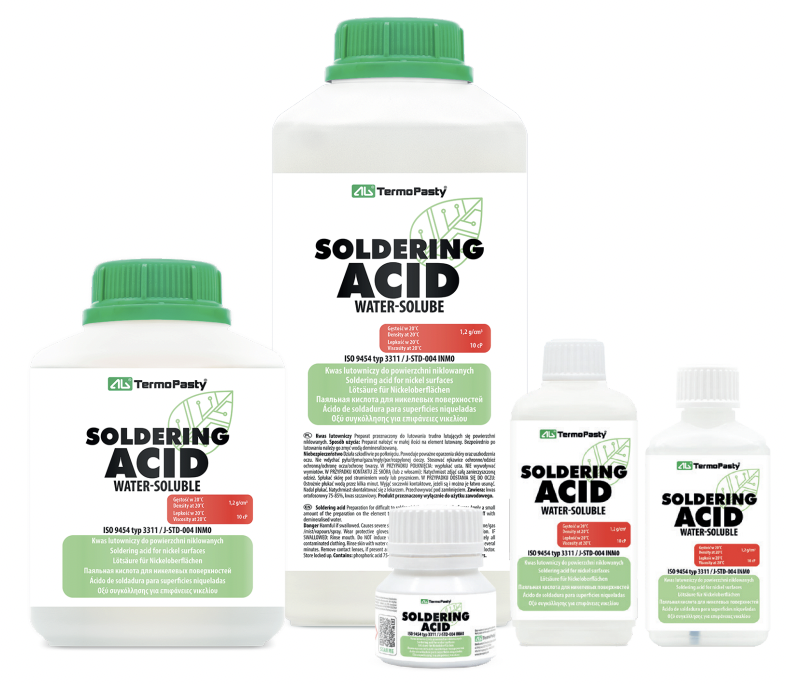 Naša spájkovacia kyselina od AG TermoPasty je určite tou správnou voľbou pre špecialistov, ktorí hľadajú spoľahlivosť a efektivitu. Produkt je prispôsobený pre ťažko spájkovateľné poniklované povrchy, je dostupný v rôznych objemoch a spĺňa najvyššie medzinárodné štandardy.