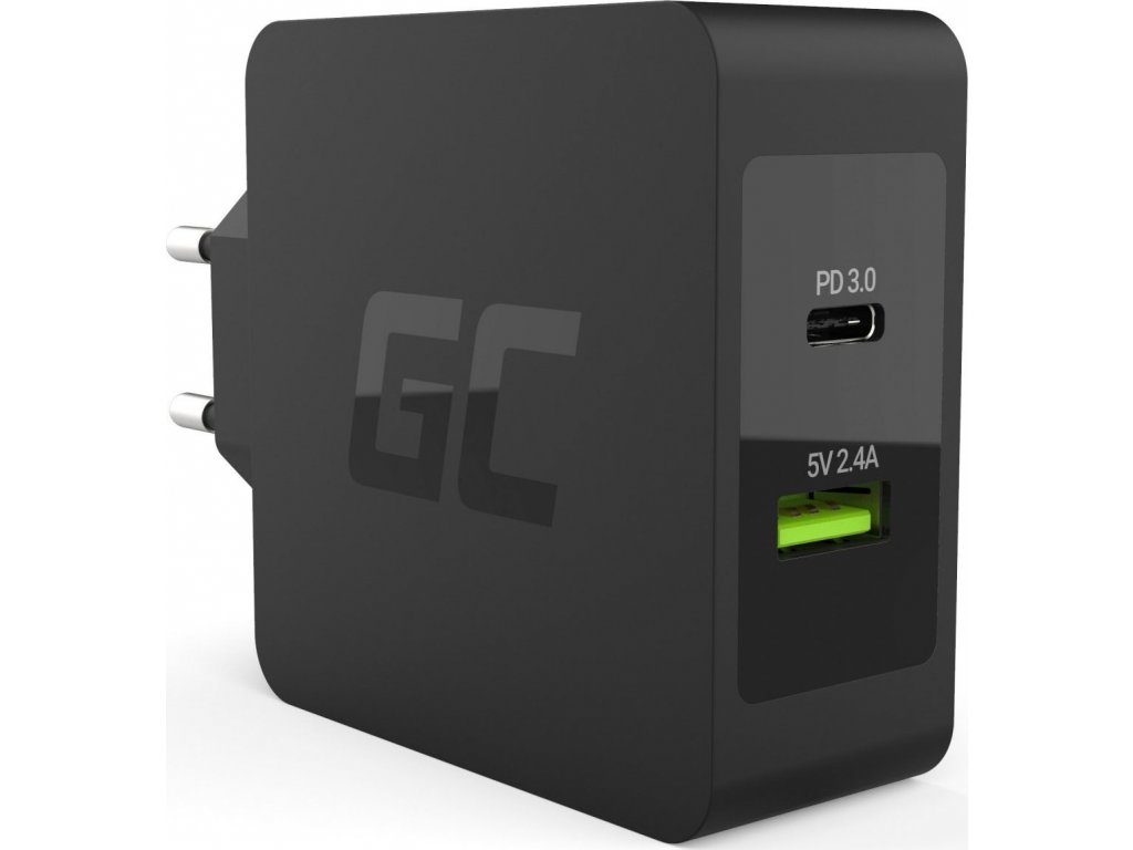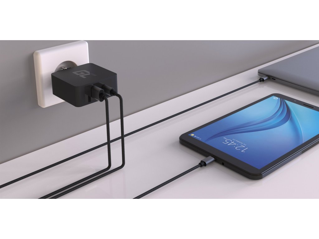 Nabíjačka USB-C Green Cell nabíja zariadenie až 3x rýchlejšie ako štandardný napájací adaptér. Nabíjajte dve zariadenia súčasne.
