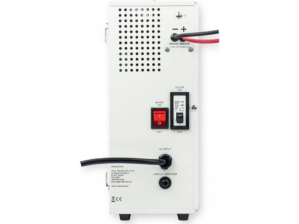 - V režime MPPT - výstupné napätie môže oscilovať medzi 70-245V AC (50Hz), vďaka čomu pri nízkom výkone zo solárnych panelov (nízke slnečné svetlo) bude napájať výstupné zásuvky zo 70V AC.