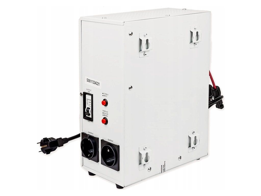 - V STABILNOM režime - výstupné napätie je 230V AC (50Hz) a je udržiavané, keď je zo solárnych panelov získavaný dostatočný výkon. Ak je výkon z panelov príliš nízky, zariadenie nebude napájať výstupné zásuvky.