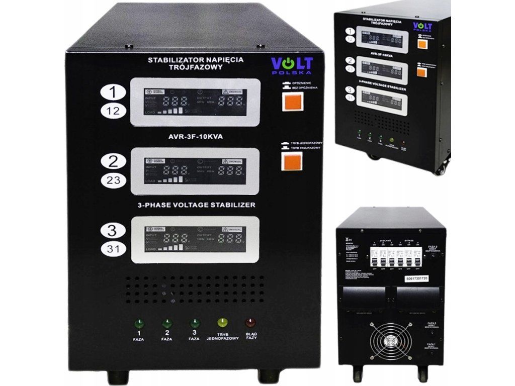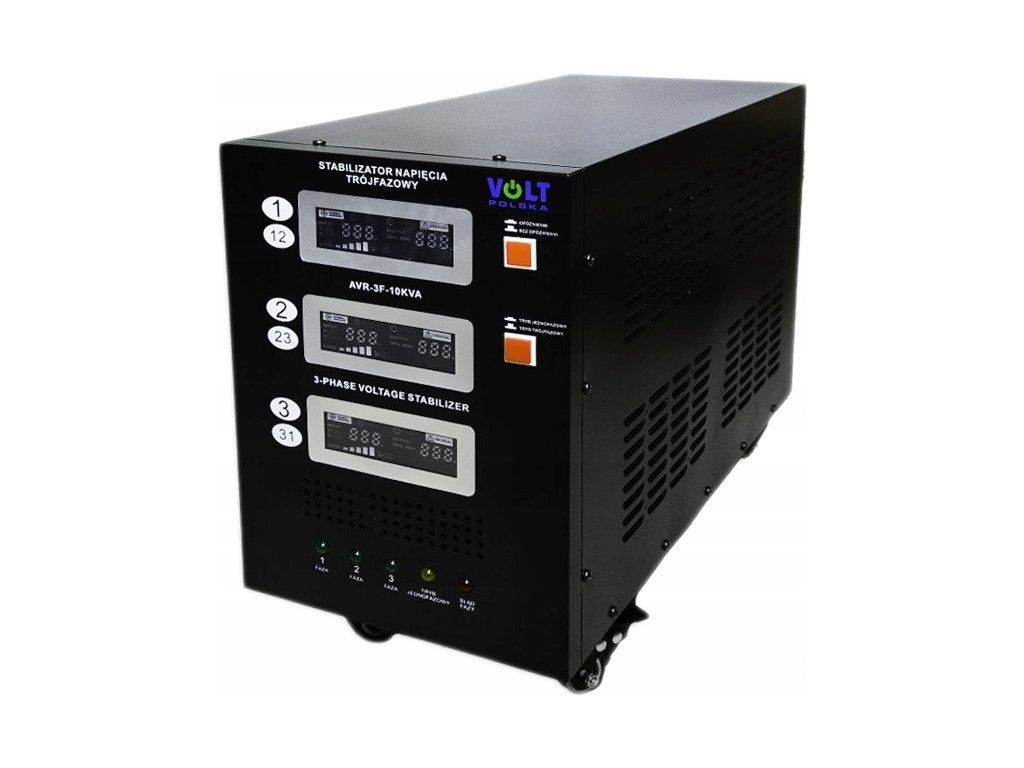Trojfázový stabilizátor sieťového napätia AVR PRO 10000VA 3% 3F kombinuje vlastnosti dvoch zariadení: regulátora napätia a prepäťovej ochrany.