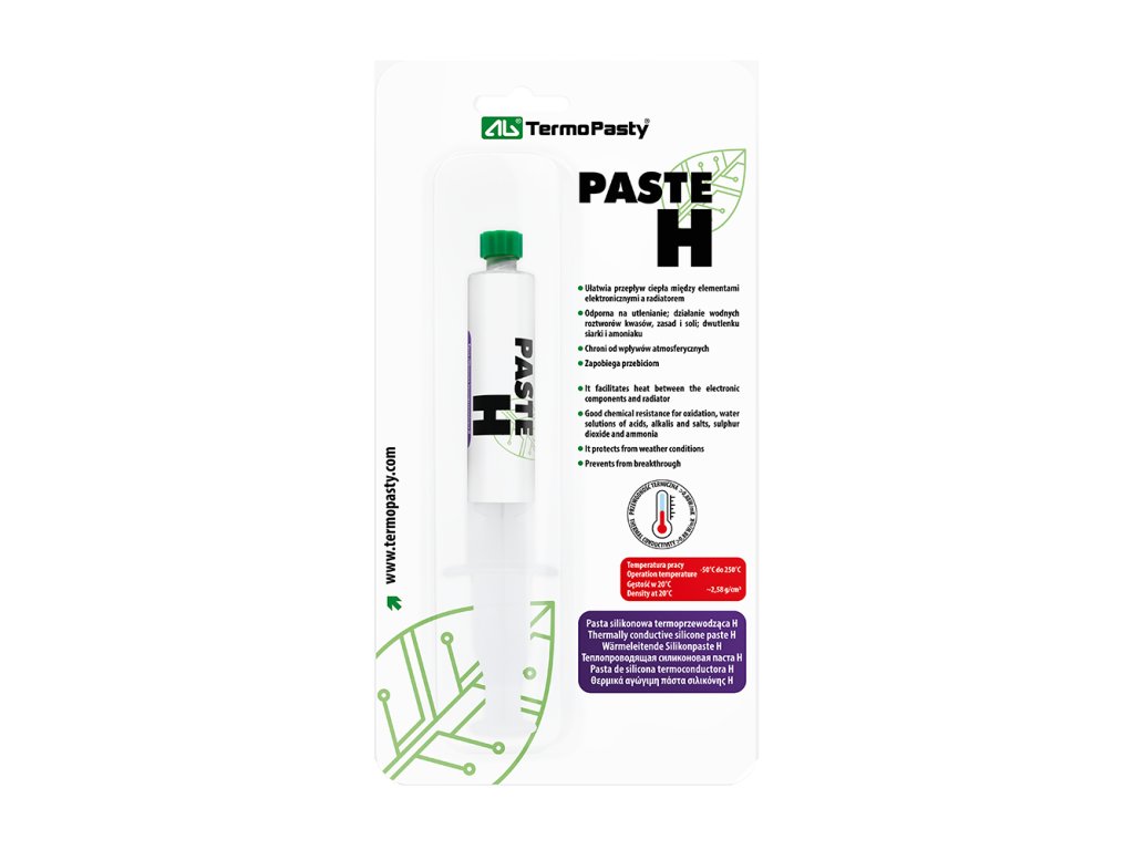 Naša pasta bola špeciálne navrhnutá tak, aby uľahčila prenos tepla medzi elektronickými komponentmi a chladičom. Je nepostrádateľná pre správnu funkciu teplotných čidiel, chráni ich pred vplyvmi prostredia a zabraňuje prierazom. Okrem toho sa vyznačuje vynikajúcou chemickou odolnosťou voči oxidácii, vodným roztokom kyselín, zásad a solí, rovnako ako oxidu siričitému a amoniaku. Tiež je vysoko odolná voči elektrickému prúdu, čo zvyšuje bezpečnosť jej použitia.